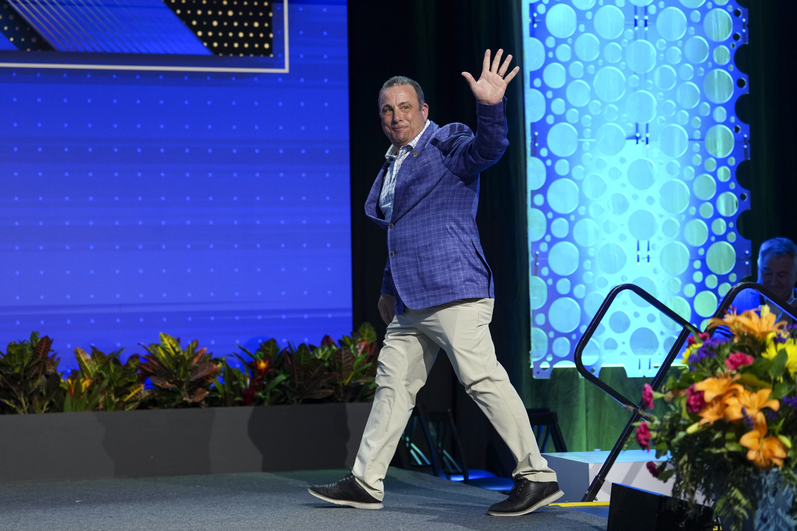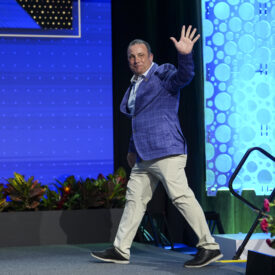 ORLANDO, FL - JANUARY 21: 2026 Deacon Palmer Award winner Mike D’Agostino, PGA, during the PGA Show National Awards ceremony on the industry stage at Orange County Convention Center on Wednesday, January 21, 2026 in Orlando, Florida. (Photo by Darren Carroll/PGA of America)